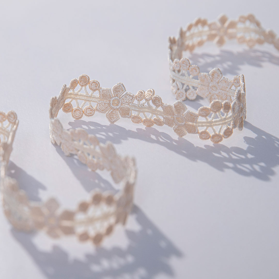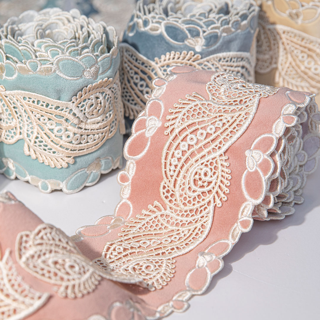 創(chuàng)新性的將水溶刺繡融入花邊;